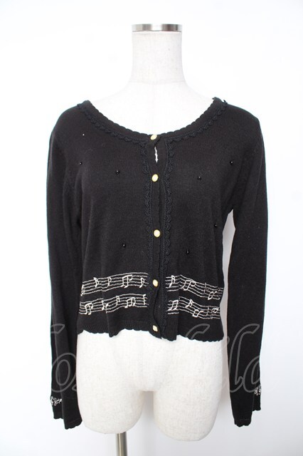 axes femme / メロディー刺繍カーディガン 黒 Y-26-01-07-091-AX-TO-SZ-ZY