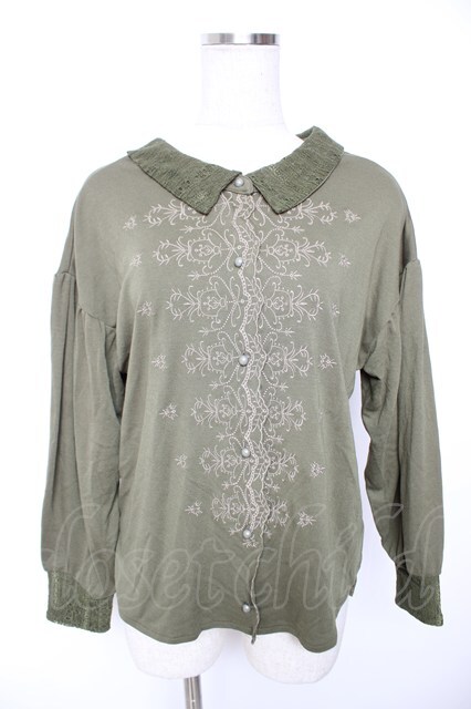 axes femme / 刺繍入シャツデザインプルオーバー M グリーン Y-26-01-07-126-AX-TO-SZ-ZY