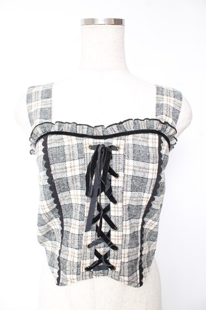 axes femme POETIQUE / チェック柄ビスチェ M 黒 Y-26-01-07-133-AX-TO-SZ-ZY