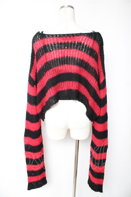 REFLEM / キャミソール付きボーダークロップドニット F レッド×ブラック Y-26-01-07-141-PU-TO-SZ-ZY