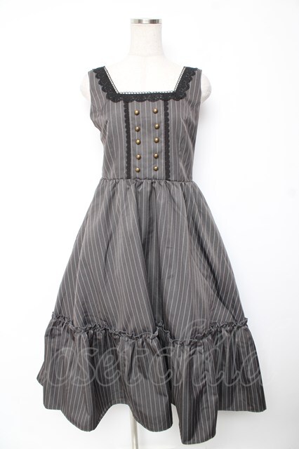 m petit by misako / TT*AOKストライプジャンパースカート M 中灰 Y-26-01-07-161-LO-OP-SZ-ZY