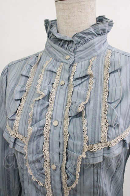 axes femme / ストライプブラウス M サックス H-26-01-10-1042-AX-BL-NS-ZH