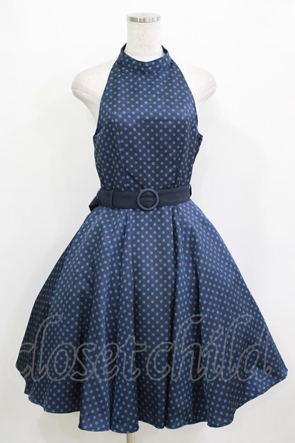 Innocent World / ドット柄ホルターネックジャンパースカート M ネイビー H-26-01-10-1007-IW-OP-NS-ZH