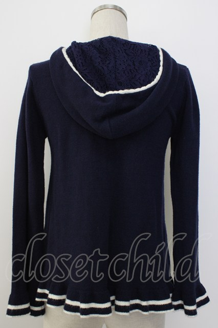 axes femme / フロント編み上げニットフードトップス 紺X白 T-26-01-08-002-AX-TO-SA-ZT [戻る]
