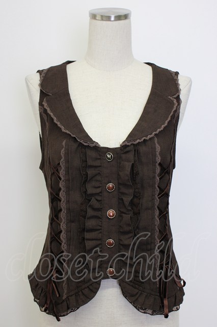 axes femme / レースアップベスト ブラウン T-26-01-10-004-AX-TO-SA-ZT