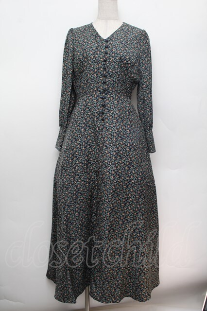 an another angelus / コルセット切替小花柄ロングワンピース F ネイビー S-26-01-04-046-CA-OP-TK-ZS