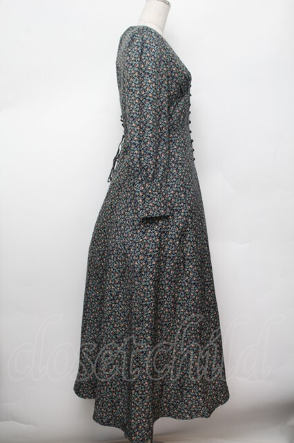 an another angelus / コルセット切替小花柄ロングワンピース F ネイビー S-26-01-04-046-CA-OP-TK-ZS