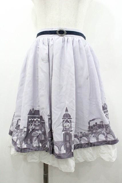 axes femme / 町並み柄スカート ラベンダー I-26-01-06-079-AX-SK-SA-ZI