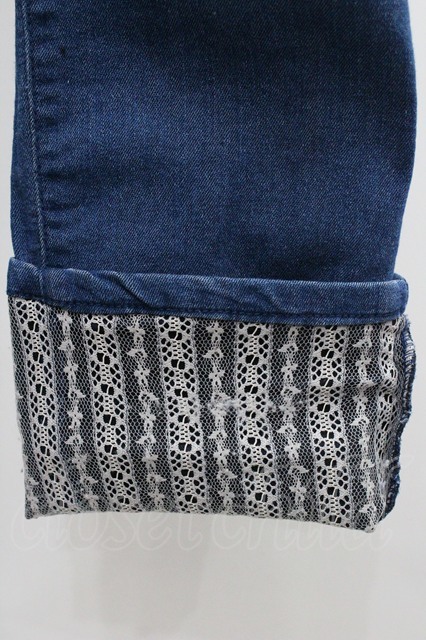 axes femme / 裾レースストレッチデニムパンツ L ブルー I-26-01-06-095-AX-PA-TE-ZI