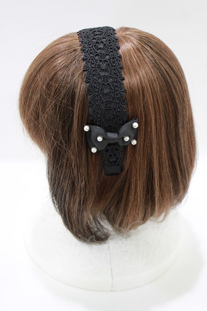 m petit by misako / リボンパールレースカチューシャ ブラック H-26-01-13-082-LO-AC-NS-ZH [戻る]