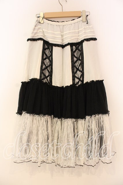 ALGONQUINS / 異素材ティアードスカート ブラック×ホワイト O-26-01-08-034-AL-SK-IG-OS [戻る]