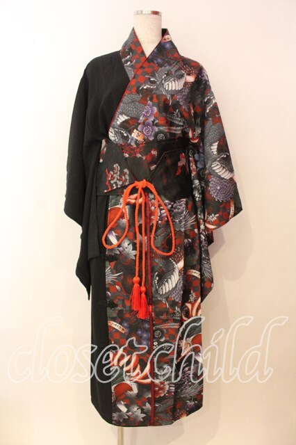 Qutie Frash / 2025 浴衣3点SET ブラックXレッド O-26-01-08-001-QU-OP-YM-OS