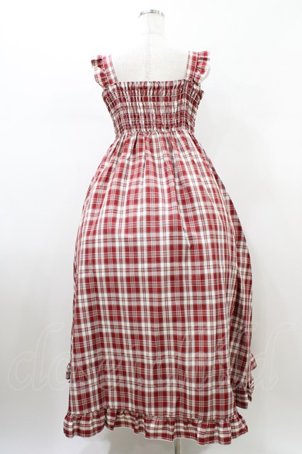 FLC / 皆方由衣コラボ/チェックフリルジャンパースカート L レッド H-26-01-14-1029-0-OP-NS-ZH