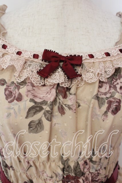 Pina sweetcollection / フリルスカラップワンピース ローズ柄・ベージュ O-26-01-08-022-LO-OP-IG-OS