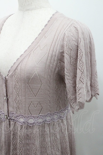 axes femme POETIQUE / トランプ柄透かし編みカーディガン M ピンク I-26-01-08-014-AX-TO-TE-ZI