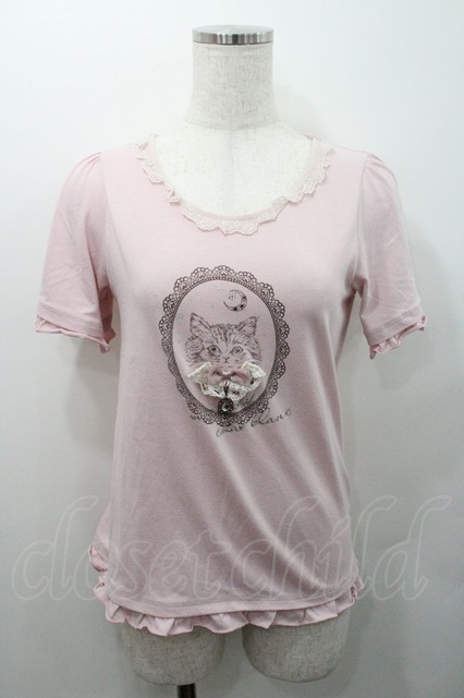 axes femme / 猫プリントTシャツ M ピンク I-26-01-08-018-AX-TS-TE-ZI