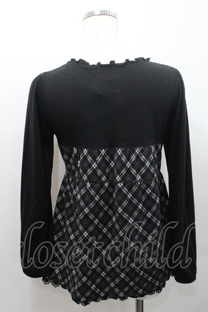 axes femme / チェック切替トップス M 黒 I-26-01-08-032-AX-TO-TE-ZI
