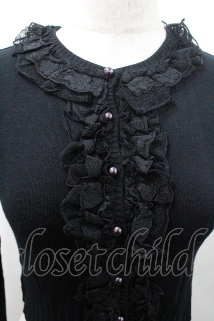 JESUS DIAMANTE / レースボーダーニットカーデ 黒 I-26-01-08-036-JE-TO-SA-ZI