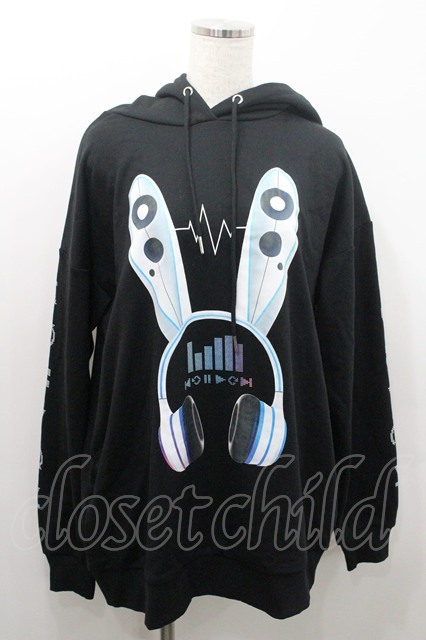 LISTEN FLAVOR / サイバーうさ耳ヘッドホンパーカー 黒 I-26-01-08-041-PU-TO-SA-ZI
