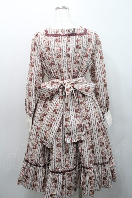 axes femme kawaii / ストライプローズ柄ワンピース アイボリーX赤 I-26-01-08-064-AX-OP-SA-ZI