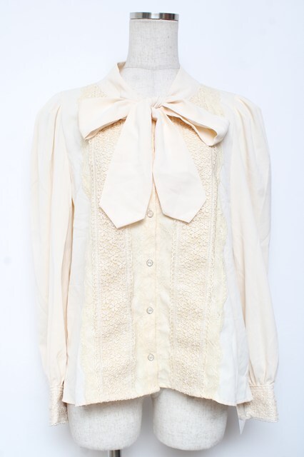 axes femme / 繊細レース重ねボウタイブラウス M 生成り Y-26-01-09-029-AX-BL-SZ-ZY