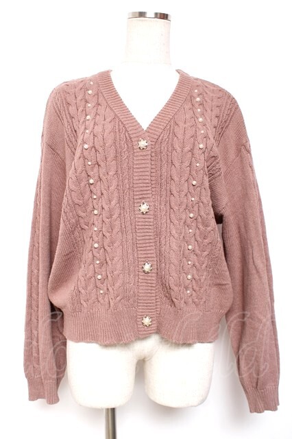 axes femme / パール×ケーブルニットカーデ F モカ Y-26-01-09-034-AX-TO-SZ-ZY