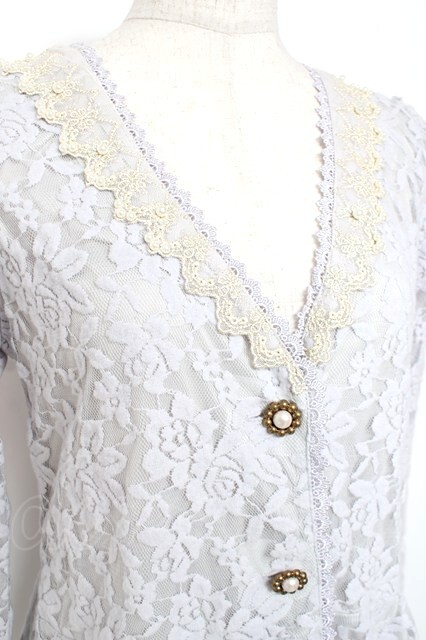 axes femme / 総レースペプラムカーディガン M ラベンダー Y-26-01-09-041-AX-TO-SZ-ZI