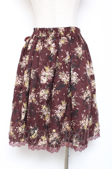 axes femme / フラワーモチーフスカート ワイン Y-26-01-09-124-AX-SK-SZ-ZY