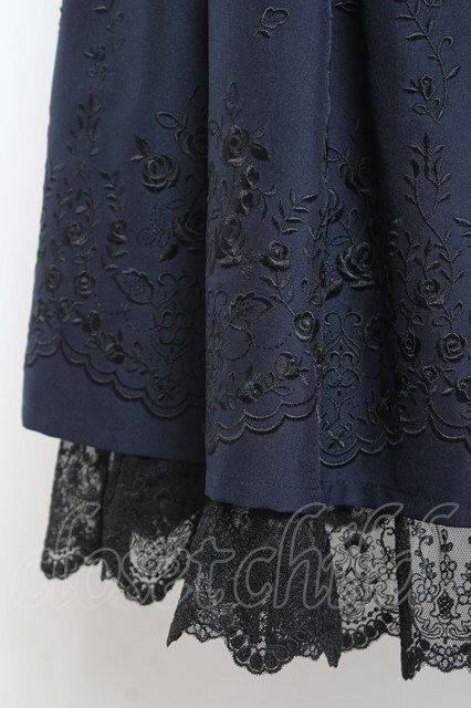 axes femme / リボン付パネル刺繍スカート M 紺 Y-26-01-09-135-AX-SK-SZ-ZY