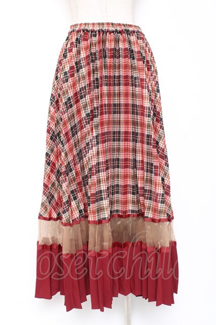 axes femme POETIQUE / チェック切替プリーツスカート M ワイン Y-26-01-09-160-AX-SK-SZ-ZY