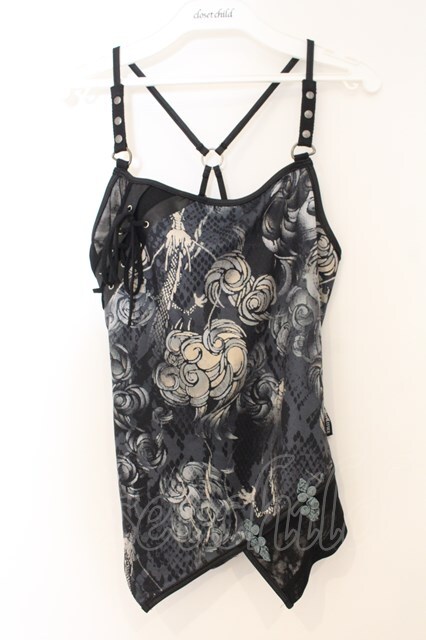 Ozz Croce / 和柄レースアップキャミソール グリーン系 O-26-01-10-014-OO-TO-OW-OS