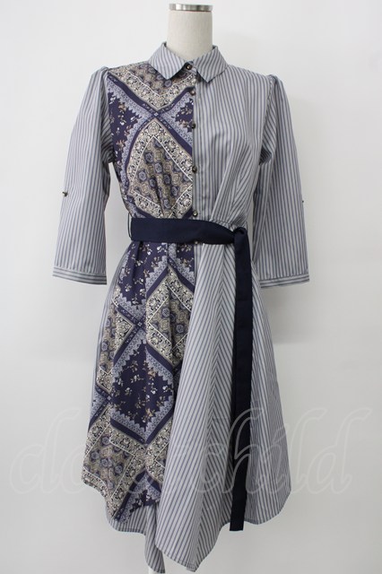 axes femme / 柄切替イレヘムシャツワンピース ブルー系 T-26-01-13-009-AX-OP-IG-ZT