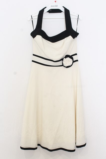 JESUS DIAMANTE / バイカラーホルターワンピース 40 アイボリー×クロ O-26-01-11-016-JE-OP-OW-OS