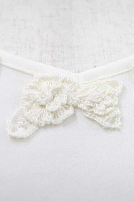 INGEBORG / フリル襟&モチーフ付半袖トップス M アイボリー I-26-01-10-029-LO-TO-SA-ZI
