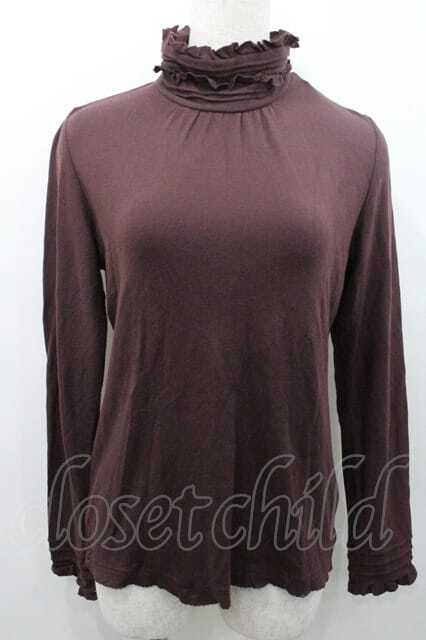 PINK HOUSE / ピンタック&ピコフリルハイネックカットソー M ブラウン I-26-01-10-057-LO-TO-SA-ZI