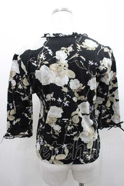 INGEBORG / 花柄五分袖トップス M ブラック I-26-01-10-059-LO-TO-SA-ZI