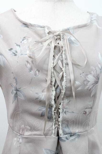 evelyn / フラワープリント編み上げリボンノースリーブワンピース ピンクベージュ I-26-01-10-083-LO-OP-SA-ZI [戻る]