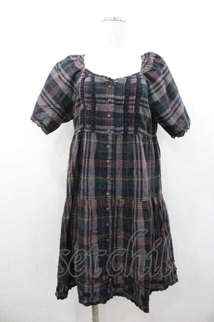 PINK HOUSE / チェック半袖チュニックブラウス 黒X茶 I-26-01-10-100-LO-BL-SA-ZI