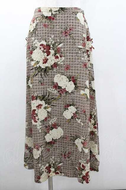 INGEBORG / チェック&ブーケ柄ポケットリボンスカート L グレー I-26-01-10-116-LO-SK-SA-ZI