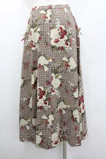 INGEBORG / チェック&ブーケ柄ポケットリボンスカート L グレー I-26-01-10-116-LO-SK-SA-ZI [戻る]
