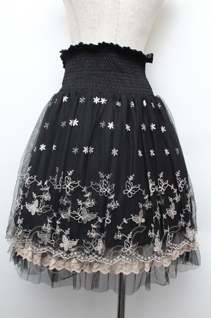 axes femme / バタフライ刺繍ハイウエストスカート 黒 S-26-01-10-060-AX-SK-HR-ZS [戻る]