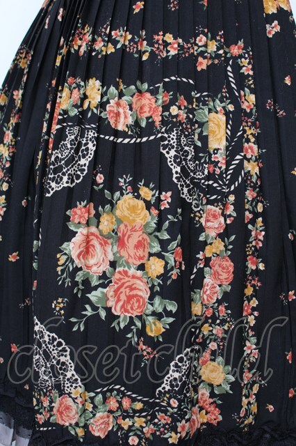 axes femme / スカーフ柄プリーツスカート 黒 S-26-01-10-061-AX-SK-HR-ZS