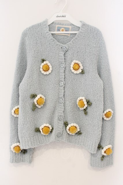 PINK HOUSE / マーガレットモチーフ使いニットカーディガン サックス O-26-01-12-046-LO-TO-IG-OS