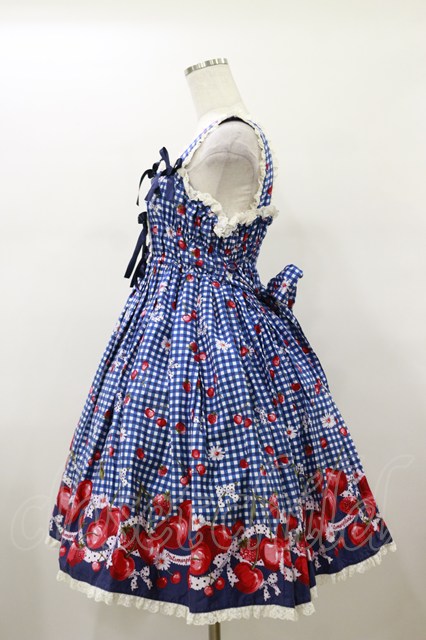 metamorphose / ギンガムチェリーシャーリングジャンパースカート Free ブルー H-26-01-17-082-ME-OP-NS-ZH [戻る]