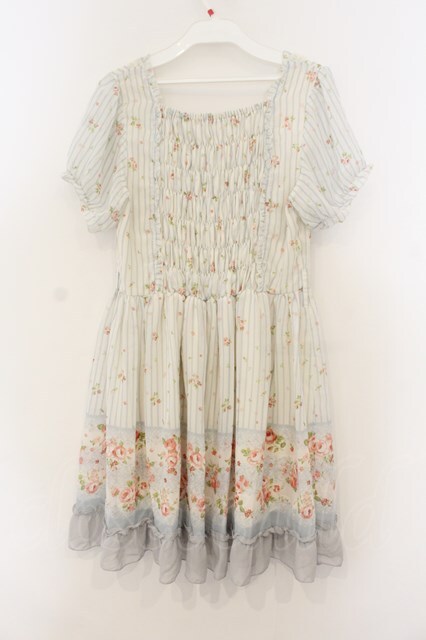 axes femme / ストライプローズptシフォンワンピース オフシロ×サックス O-26-01-13-030-AX-OP-IG-OS