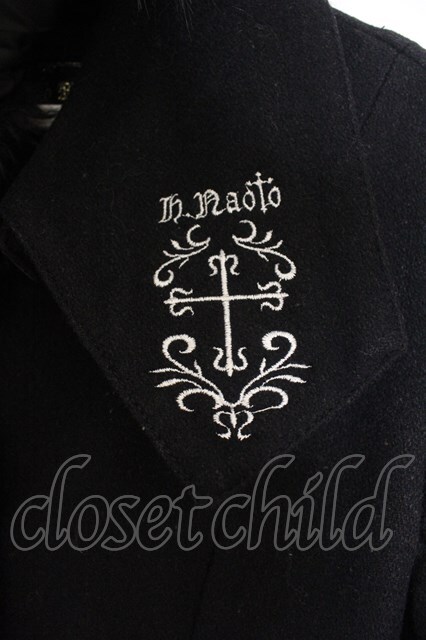 h.naoto Blood / 刺繍入りロングコート ブラック O-26-01-13-013-HN-CO-OW-OS