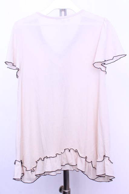 axes femme / スカーフ風レース切替カットソー アイボリー×ブラウン O-26-01-12-2022-AX-TO-IG-OS