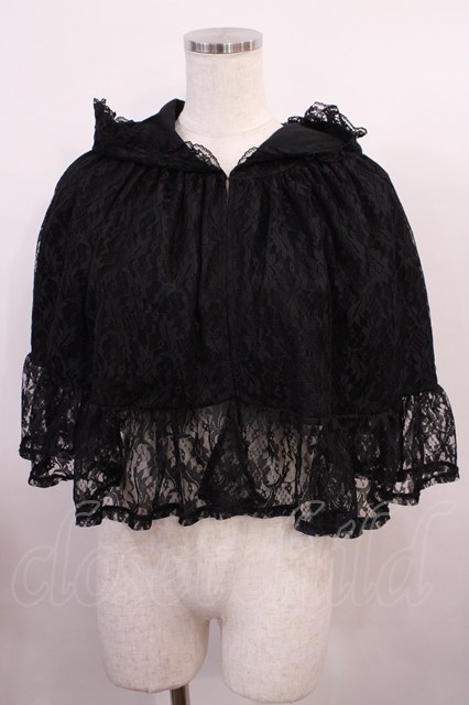 Ank Rouge / フード付きレースケープ M ブラック H-26-01-17-1025-CA-TO-NS-ZH