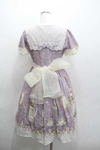 仲夏物語 / チューリップ花瓶柄半袖ワンピース S パープル I-26-01-13-040-EL-OP-SA-ZI