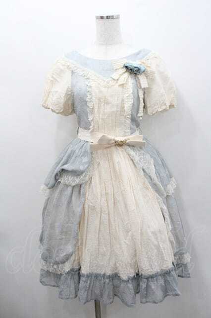 Nyanya / フラワーチュール重ね半袖ワンピース M 青X生成り I-26-01-13-042-EL-OP-SA-ZI